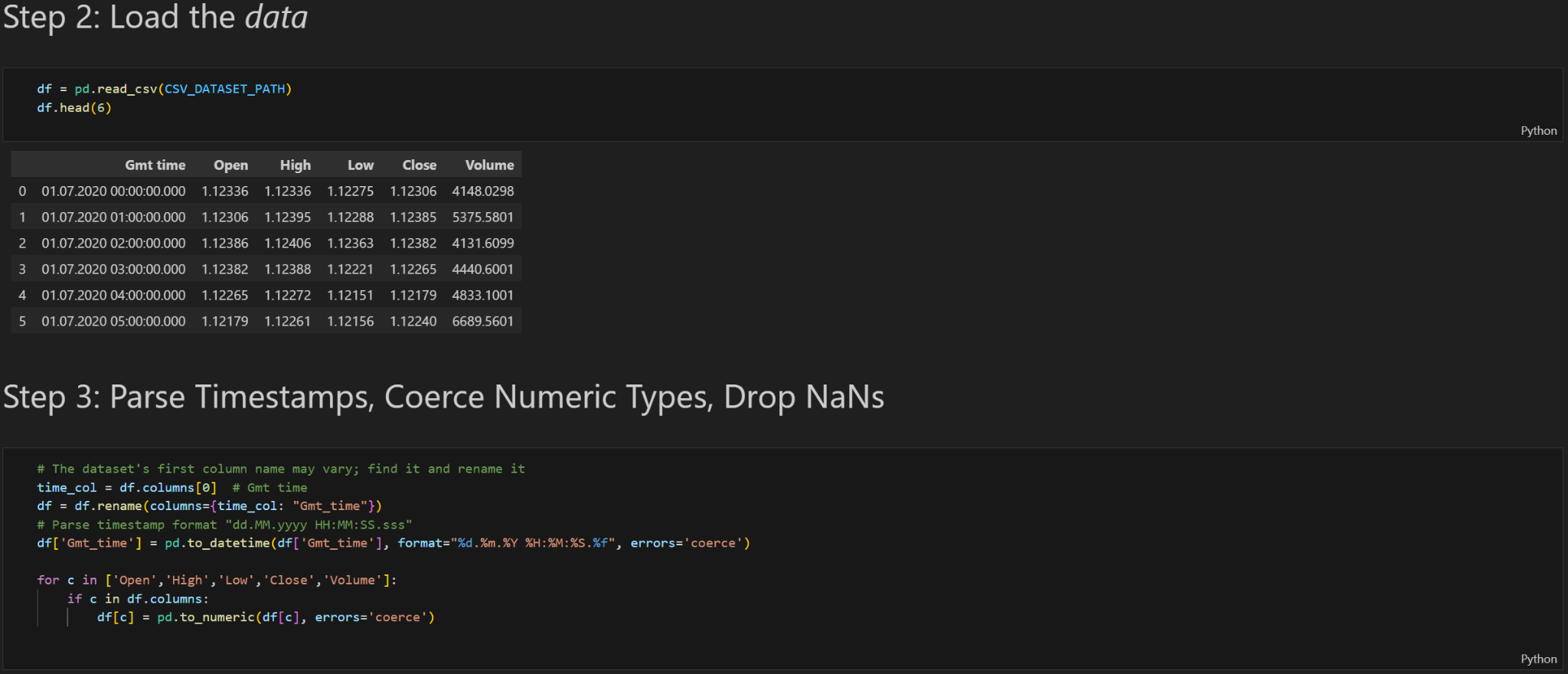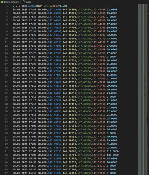This project aims to develop a Transformer-based forecasting model for the EUR/USD currency pair using historical hourly candlestick data. The Transformer architecture was selected because it excels at learning long-term dependencies in sequential data. However, I have picked a relatively small dataset, consisting of 17,768 hourly candlesticks. A small data set was chosen for two reasons: I didn’t have the hardware to work with large datasets, and I didn’t have the time to train on them. An ideal dataset size for training a Transformer model would be at least 1,000,000 candlestick data points.
