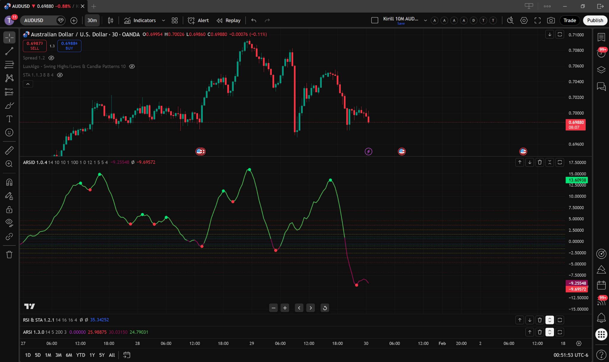 Over the winter break between 2025 and 2026, I learned the language and started brainstorming and creating indicators. Eventually, I became so good at it that I decided to start client scripting. Several of my works are shown below.