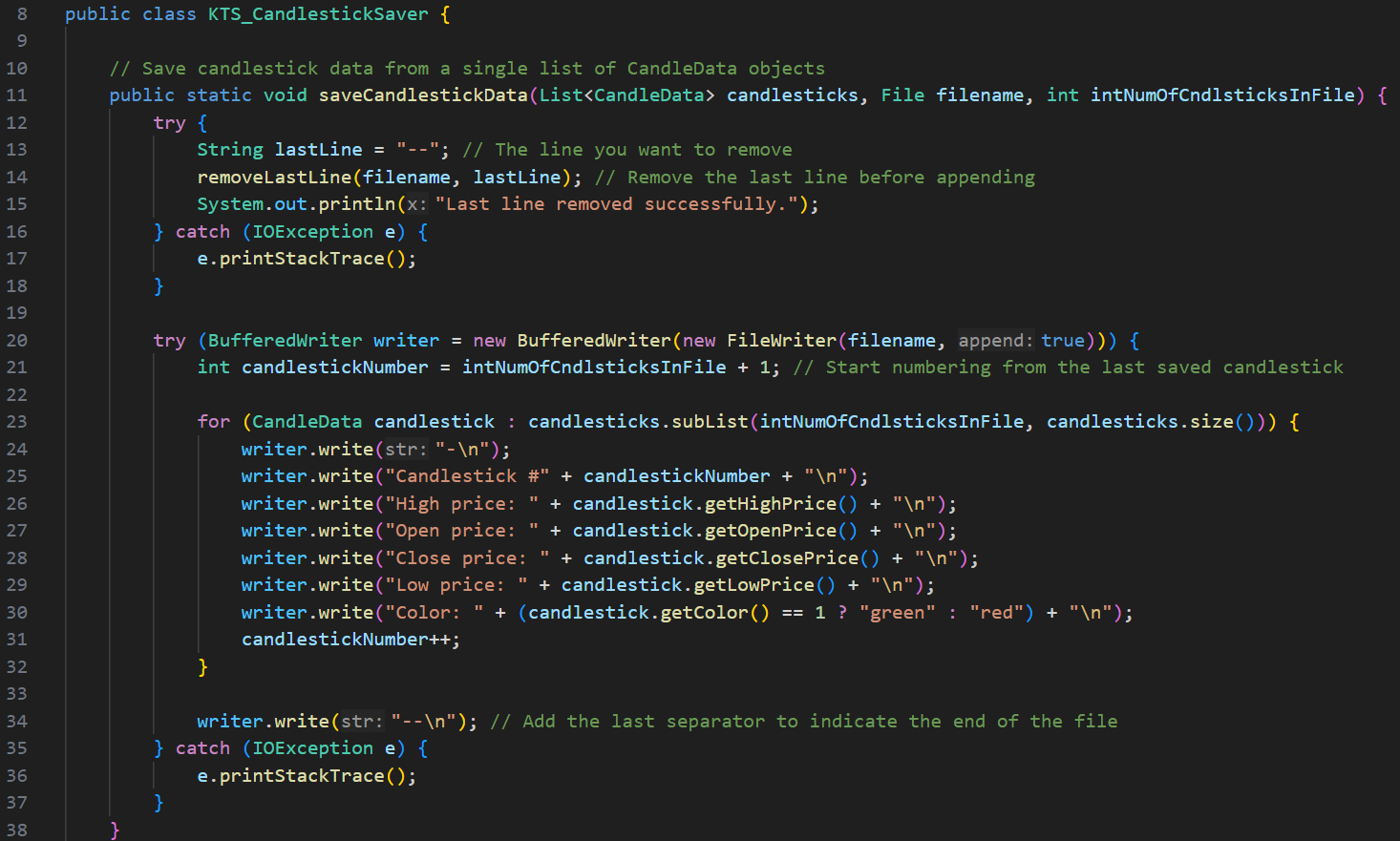 There were other improvements to the application, such as changing the text file format, introducing timestamps, improving data management, allowing candltick info to be added directly through the application, and improving read and write operations on the file, among other changes.