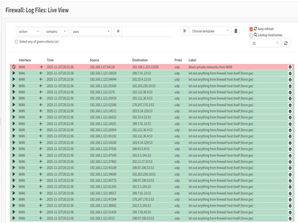After we have set everything up, we have conducted deep penetration testing and incident response. We divided our team into two groups: one group of two people was the attackers, and the other was a single person who was the incident response team. Attackers used Metasploit and Nmap to conduct reconnaissance and launch the attack from the WAN. The incident response team used OPNsense Logs and Wireshark to detect the intrusion and reconnaissance attempts.